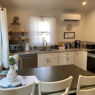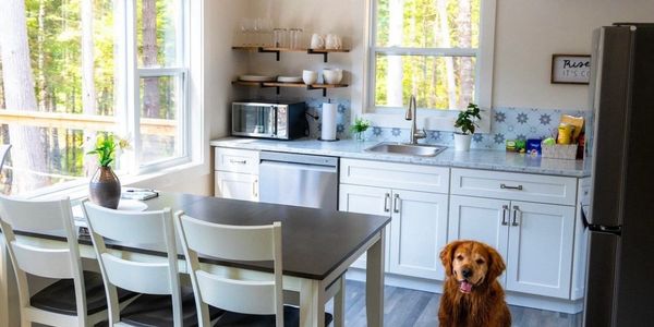 Cottage 4 - Tucked in the back is the Hideaway Cottage, one of four newly built vacation rental cottages at Rocky Point Farms. An inviting indoor space with vaulted ceilings and large windows that pour natural light into a relaxing living room and an elegant kitchen with high-end appliances. This cottage is the perfect option for families as there is a bunk bed with twin/double! This cottage is also pet-friendly. This cottage has a private hot tub (for registered guests only). No water views. Each cottage has its own parking space.